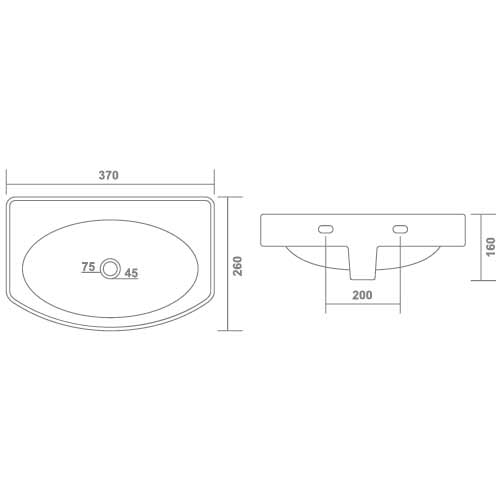 Product: Wall Hung Basin Dimension: 370 x 260 x 160mm